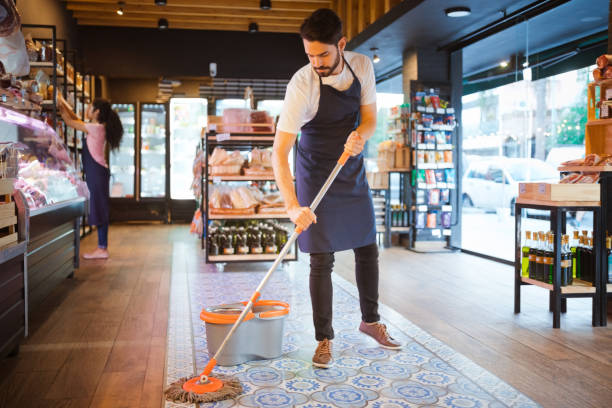 home ⭐ ISHAQ Super Store – Fresh Products, Best Prices Dedicated saleswoman cleaning the store window at the retail store Full length of salesman mopping floor at convenience store. Young male owner is working at delicatessen. He is wearing apron.